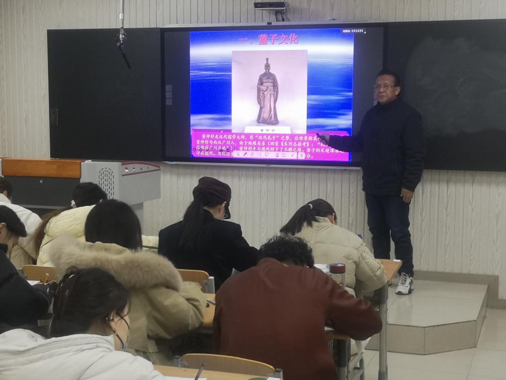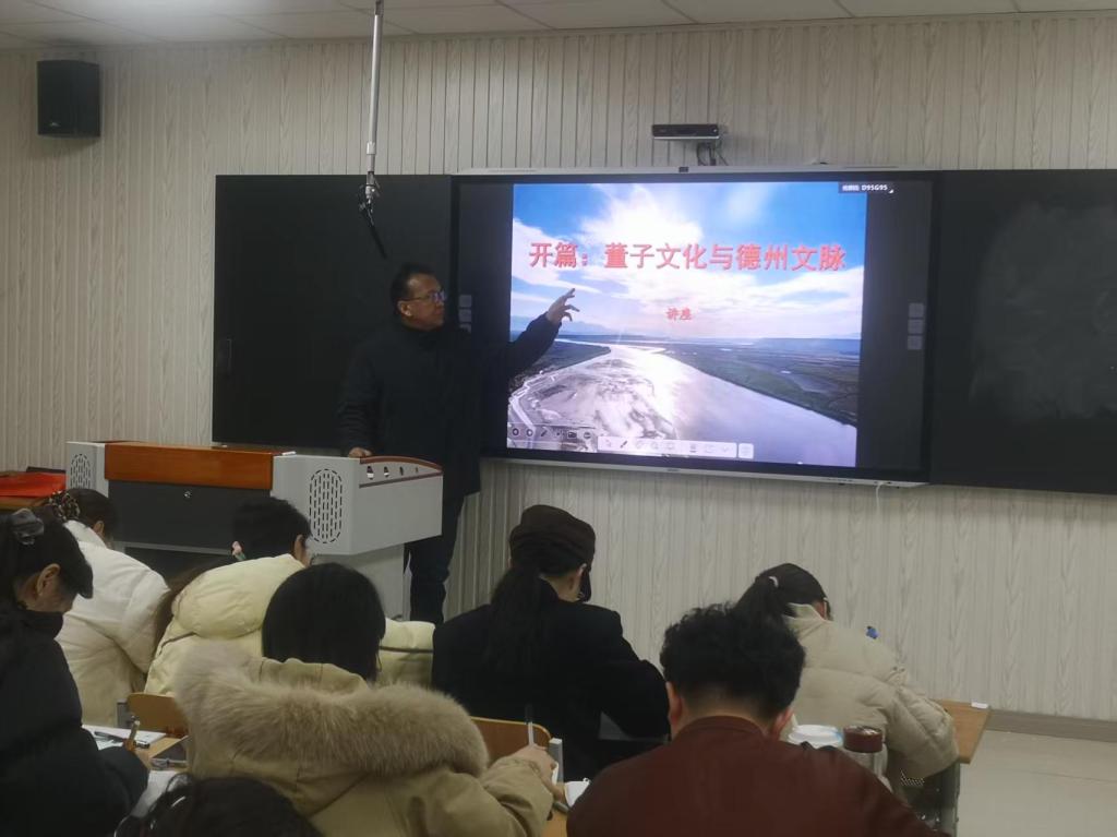 2026年3月16日,在博文楼121智慧教室,王守栋教授为董仲舒书院学生作题为《董子文化与德州文脉》的学术报告。